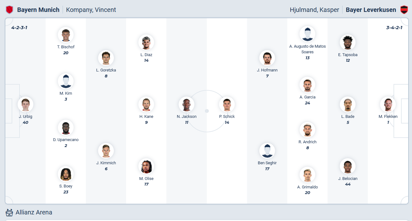 Bayern vẫn giữ thành tích toàn thắng từ đầu mùa giải, họ tiếp tục tỏ ra vượt trội so với phần còn lại của Bundesliga khi đang hơn đội nhì bảng 5 điểm dù mới được 8 vòng đấu. Muốn dễ dàng hơn trong việc bảo vệ ngôi vương thì đội bóng của HLV Vincent Kompany cần thắng trước các đối thủ cạnh tranh, sau khi có 3 điểm trước Dortmund thì Bayern muón làm điều tương tự trước Leverkusen. Nhiều khả năng các cầu thủ Bayern sẽ tận dụng tốt lợi thế sân nhà để có 3 điểm trọn vẹn trận này.